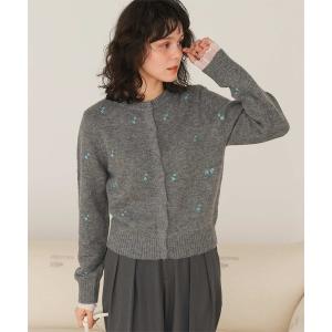 カーディガン アルパカタッチフラワー刺繍カーディガン レディース