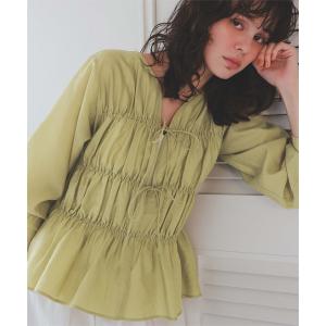 ブラウス シャツ シャーリングギャザーリボンブラウス レディース