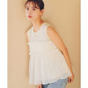 tシャツ シフォンフリルドッキングトップス レディース