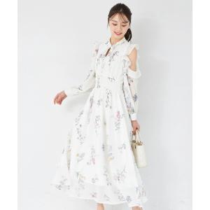ラッフルフリルオープンショルダーボタニカルフラワープリントワンピース tocco closet(トッコクローゼット)