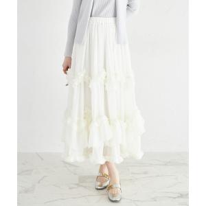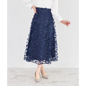 スカート 立体フラワーモチーフ刺繍シアーフレアスカート