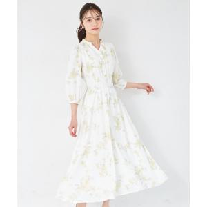 ワンピース ウエストシャーリングスキッパーフラワープリントワンピース