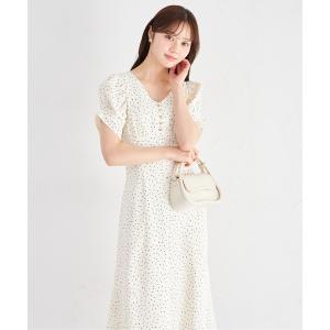 トッコクローゼット tocco closet スタイルUP見えするウエストシャーリングスキッパーフラワープリントワンピース
