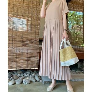 ワンピース プリーツ切り替え半袖ワンピース