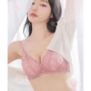 ブラジャー 「ワイヤーが刺さりにくいから痛くない、バストを綺麗に整えるブラ」Leene ピオニーレースカシュクールブラジャー「ブラ単品」