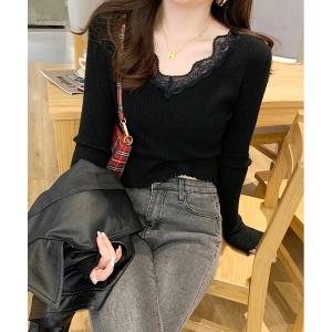 tシャツ レース付きVネックリブトップス レディース tシャツ レース付きVネックリブトップス レディース2,200円
