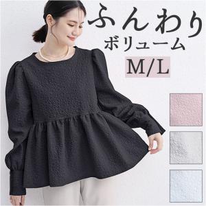 ブラウス レディース おしゃれ 通販 カットソー ペプラム トップス フレア 長袖 プルオーバー パフスリーブ ボリュームスリーブ 袖コンシャス 大人