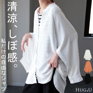 シャツ レディース トップス 変形 シアーシャツ とろみ ブラウス チュニック 長袖 羽織 袖ボタン マントスリーブ バンドカラー
