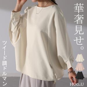 トップス すっきり 体型カバー ツイード 調 ドルマン レディース オフィスカジュアル きれいめ 七分袖 二の腕カバー