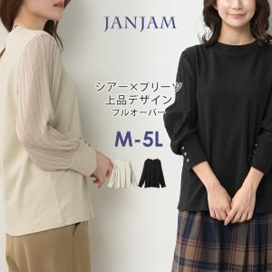 プルオーバー 大きいサイズ レディース メール便送料350円 プリーツシフォン切り替え 長袖 カットソー トップス M LL 3L 4L 5L