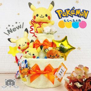 おむつケーキ でらっくす ポケモン ピカチュウ 2段 送料無料 ベビーギフト 名入れ 出産祝い 名入れ 男の子 女の子 パンパース おむつタワー ダイパーケーキ
