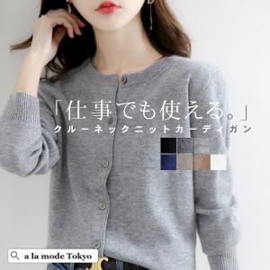 カーディガン レディース 秋冬 ニット 事務 オフィス 黒 丸首 クルーネック スクール 学生 ビジネス