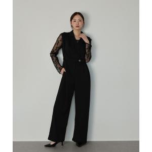 パンツドレス テーラードオールインワンパンツドレス+ジャガードチュールトップス2点セット 卒業式 入学式 結婚式 成人式 二次会 同窓会 セレモニー
