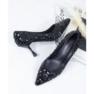 パンプス スパンコール ポインテッドトゥ7.5cmくびれヒールパンプス