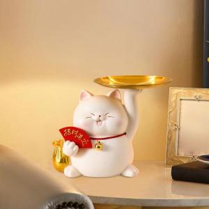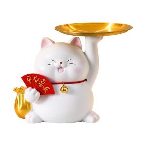 貯金箱サービングトレイ寝室オーガナイザー飾り猫樹脂像置物ホワイト
