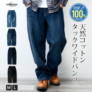 ワイドパンツ デニム メンズ ボトム ジーパン バルーンパンツ ウエストゴム ゆったり デニムパンツ ワイド カジュアル 綿 綿100 おしゃれ 秋冬