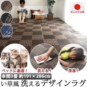 国産 洗える い草 風 ラグ カーペット 本間3畳 191×286cm ペット マット ポリプロピレン PP ダイニングラグ レジャーシート いぐさ イグサ 調 デザイン ラグ