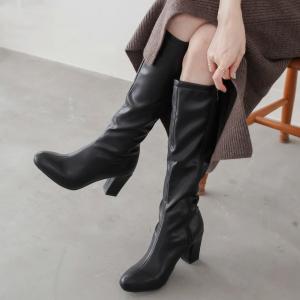 太ヒール ストレッチ ロングブーツ レディース 秋冬 チャンキーヒール 低反発 アミアミ