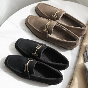 ボア付きスクエアトゥ モカシン ビットローファー 防寒 レディース 痛くない 歩きやすい アミアミ