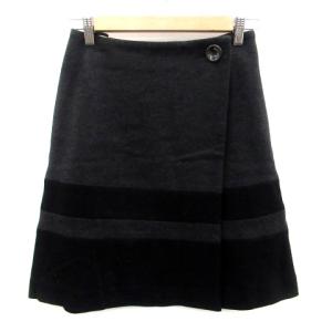 アンケート enquete フレアスカート ラップスカート ひざ丈 ウール 38 チャコールグレー 黒 ブラック /HO17 レディース