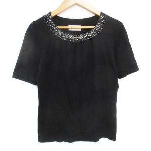 アンケート en quete ニット カットソー 半袖 ラウンドネック ビーズ スパンコール 9 M 黒 ブラック /FF38 レディース
