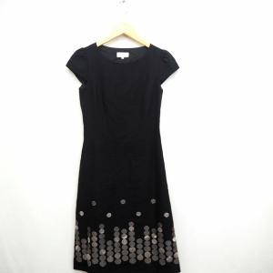 アンケート en quete ワンピース 水玉 刺繍 丸首 ロング 半袖 ウール 7 ブラック 黒 /MT34 レディース