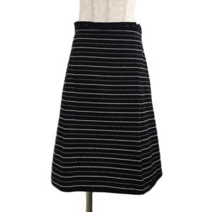 アンケート en quete スカート 台形 膝丈 ボーダー 刺繍 タック 9 黒 白 ブラック ホワイト レディース