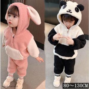 子供用 上下セット 女の子 男の子 プレゼント ギフト 2歳 3歳 4歳 5歳 冬 もこもこ パーカー 長袖 ルームウエア ウサギ パンダ