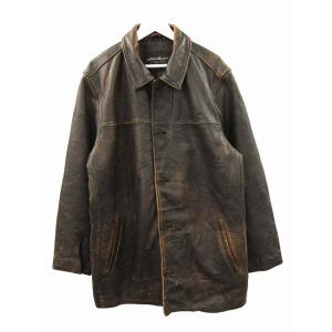 エディーバウアー EDDIE BAUER 00s レザー カーコート XL 牛革 ダークブラウン オールド メンズ