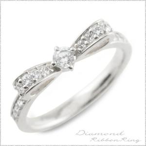 18金 指輪 ダイヤモンド ピンキーリング リボン エンゲージリング ダイヤモンドリング ホワイトゴールドk18 婚約指輪 リング クリスマス