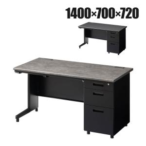 法人様限定 スチールデスク ブラック EX 片袖机 オフィスデスク 引き出し 幅1400×奥行700×高さ720mm 配線穴 事務机 ビジネスデスク パソコンデスク