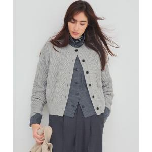 カーディガン 「洗える」カシミヤブレンド ケーブルニットカーディガン レディース