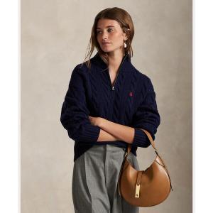 ニット セーター ケーブル ウールカシミヤ ハーフジップ セーター レディース