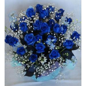 ブルーローズアレンジメント/ペインテッドブルー 30本&カスミ草