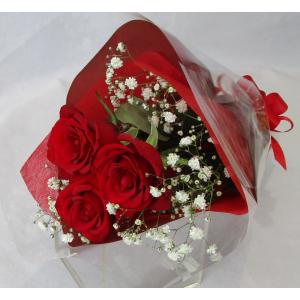 バラの花束/赤バラ3本とカスミソウのブーケ