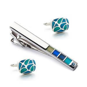 カフスボタン ネクタイピン セット アクアブルー エメラルドカラー カフリンクス