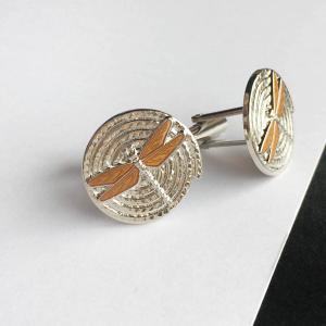 とんぼ【橙】七宝焼きのカフスボタン カフリンクス 丹銅メタル七宝