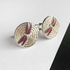 とんぼ【茜】七宝焼きのカフスボタン カフリンクス 丹銅メタル七宝