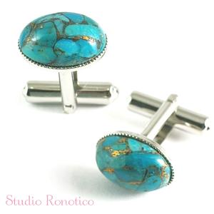 カフス ボタン ロノティコ Ronotico ターコイズ コッパーモザイク トルコ石 天然石 ギフト プレゼント