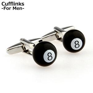 カフスボタン カフリンクス メンズ ラウンド エイトボール 8ボール ビリヤード 黒 プレゼント ギフト 誕生日 父の日 彼氏