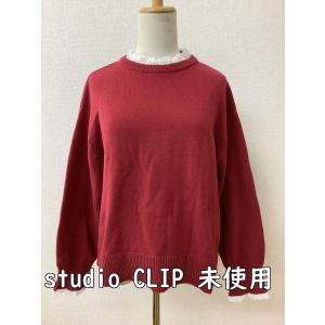 スタジオクリップ スタジオクリップ (studio CLIP) タグ付き未使用 赤ニット きなりレース付き サイズF