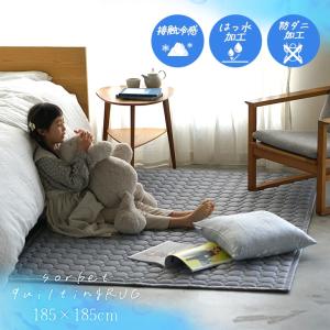 洗える 超冷感ラグ 防ダニ 撥水 ソルベキルト 185×185cm ラグ 夏用 洗える 冷感 滑らない はっ水 防ダニ おしゃれ 北欧 韓国