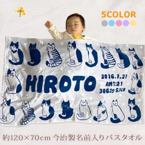 【約35営業日出荷】 出産祝い 名入れ 名前入り 誕生日 ギフト プレゼント タオル おしゃれ バスタオル 今治 日本製 結婚祝い 振り返り猫 ネコ