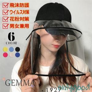 コロナ対策 防護 保護 カバー 日焼け防止 UV 花粉症対策 つば広 透明マスク 防塵 マスク併用 キャスケット 取り外し可 帽子