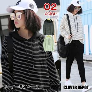 パーカー レディース おしゃれ かわいい 長袖 スウェット オシャレ トップス トレーナー プルオーバー ボーダー 白 黒 スポーツ