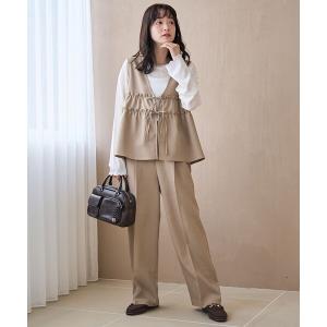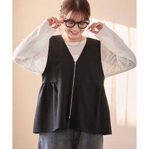 ベスト ジレ リネンライク ペプラムジップベスト レディース