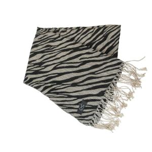 コープデチャンス COPE DE CHANCE マフラー ストール フリンジ 総柄 ゼブラ柄 アニマル ホワイト ブラック QQQ レディース