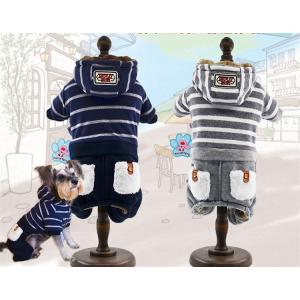 犬の服 ロンパース つなぎ カバーオール 暖かい 裏起毛 ペット用品 DOG服 犬服 犬用防寒着 ペット服 秋 冬用 ボーダー