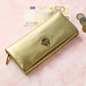 長財布 レディース 本革 かぶせ ブランド 革 ゴールドカラー 牛革 財布 カード 24枚 GOLD PFEIL(09000447r) 金運