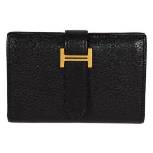 エルメス HERMES ベアン ミニ コインケース付きカードケース レディース/メンズ レザー シェーブル ゴールド金具 D刻印 ブラック